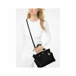Deals β¨ Michael Kors Sullivan Small Convertible Top Zip Leather Tote Black/silver π