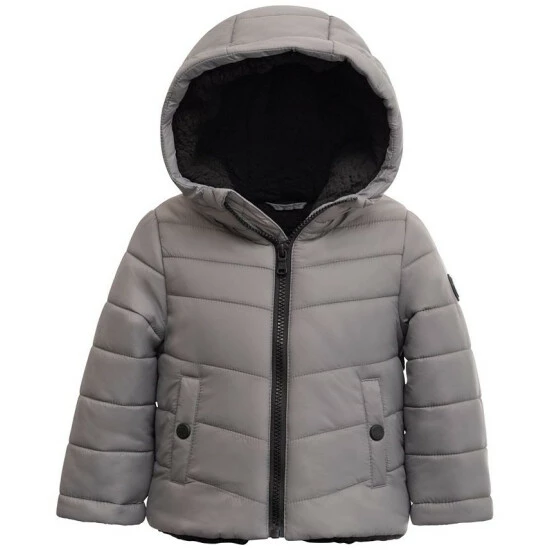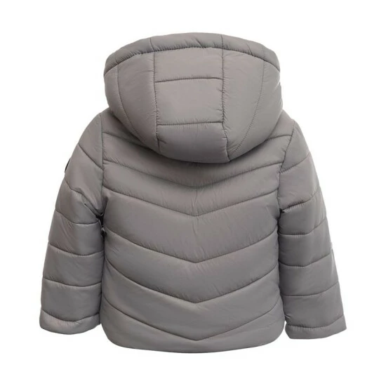 Infant boy midweight plush lined puffer jacket with Michael Kors logo zipper pull and pocket snaps.