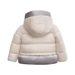 Infant girl fleece lined heavy weight peplum puffer with metallic piecing and Michael Kors logo hardware.