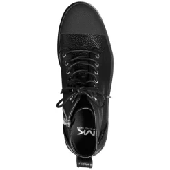 A chunky outsole caps off the stylish look of these modern lace-up leather boots from Michael Kors.