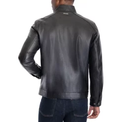 - Perforated faux leather body; snap button cuffs; Michael Kors logo band at back below collar