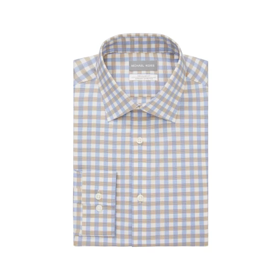 An always-sharp check pattern takes this dress shirt from Michael Kors to stylish new heights. It’s cut in a regular silhouette and is made from a cotton blend for added comfort.