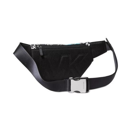 Outfitted with an adjustable strap and a vibrant logo scatter-print design, this utility bag from Michael Kors helps you tote your valuables and essentials throughout the day with enthusiasm.
