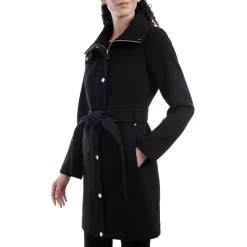 A self-tie belt defines the waistline of this petite coat from MICHAEL Michael Kors, complete with two side pockets and a sleek funnel collar.