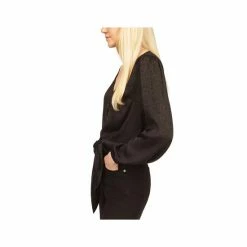 Understated in a tonal animal print, this MICHAEL Michael Kors top features shirred shoulders for stylish drape finished with a tie at the hem.