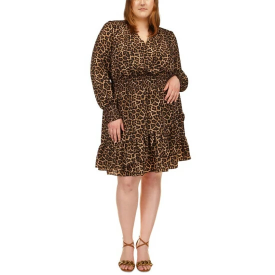 A smocked waistband lends figure-flattering definition to this plus size dress from MICHAEL Michael Kors, a chic addition to any well-rounded closet.