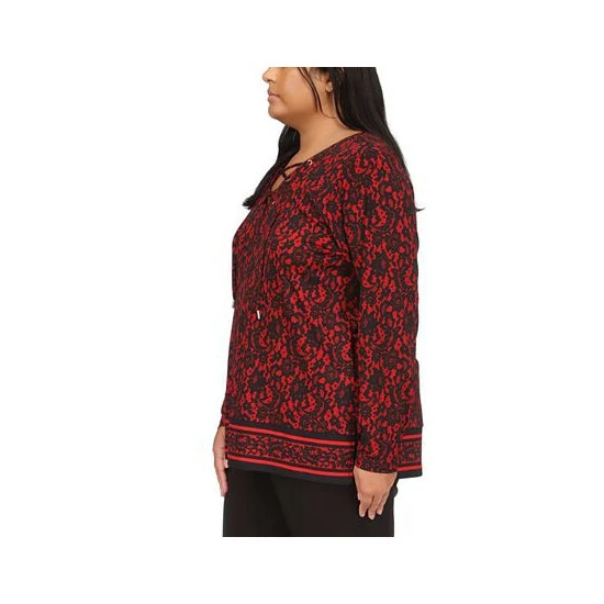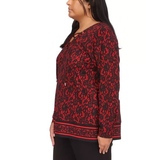 Charming lace adorns this plus size top from MICHAEL Michael Kors, finished with a stylish lace-up neckline.
