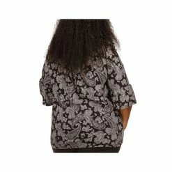 Flare sleeves bring stylish flow to this plus size MICHAEL Michael Kors knit top featuring a pretty paisley print.