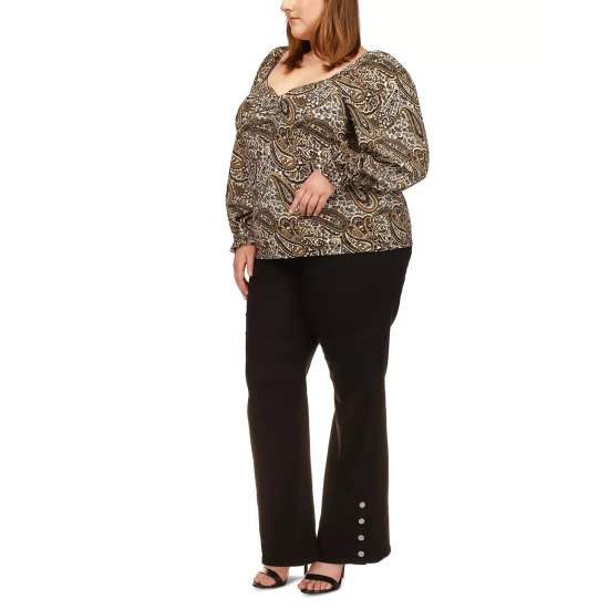MICHAEL Michael Kors’ plus size blouse combines a lightly textured fabric with a swirling paisley print for an elevated look.