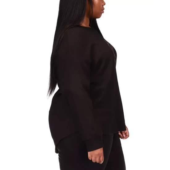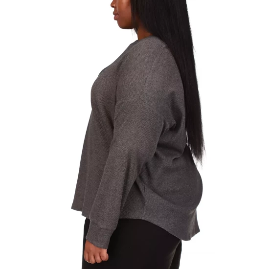 MICHAEL Michael Kors shines with a plus size waffle-knit long-sleeve T-shirt affixed with a rhinestone logo.