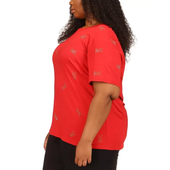 Scattered studded logos shine on this plus size short-sleeve T-shirt from MICHAEL Michael Kors.