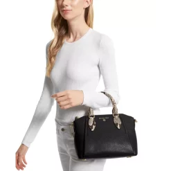 Chic contrast trim enhances the modern elegance of this compact leather messenger bag from MICHAEL Michael Kors.