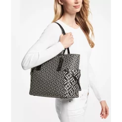 Crafted with bold, bright logo details for high-impact style, this Michael Michael Kors Sullivan tote can be carried in hand by the top handles or worn hands-free via the long, adjustable strap.