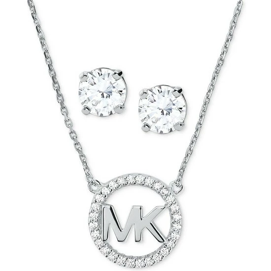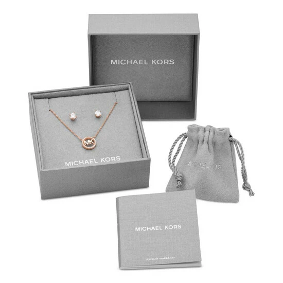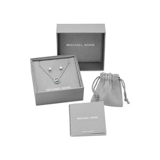 Let your style shine with this crystal logo pendant necklace and stud earrings set by Michael Kors.