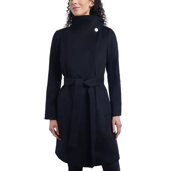 MICHAEL Michael Kors offers style in spades with this plaid wrap coat designed with an asymmetric front and self-tie belt.