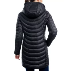 - Shell, lining & fill: polyester; fill power: 400; shell 2 & knit trim: polyester/spandex; faux fur: modacrylic/polyester