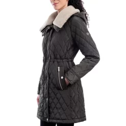 Angled lacquered heels combine with shimmering rhinestones adding inspired shine to a dressy lift in the Clara sandals from MICHAEL Michael Kors.