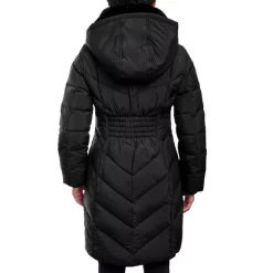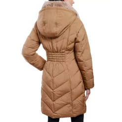 Luxe faux-fur trim and an elasticized belt come together on this chic puffer coat from MICHAEL Michael Kors.