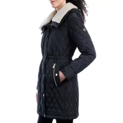 A chic faux-shearling design puts fashion in focus in this down puffer coat from MICHAEL Michael Kors.