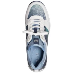 Signature shine for sporty times, the MICHAEL Michael Kors George trainer sneakers feature a smart mixed-media design atop chunky wedges.