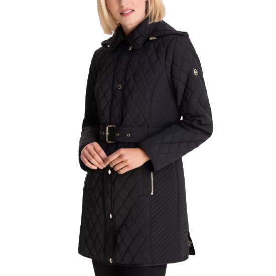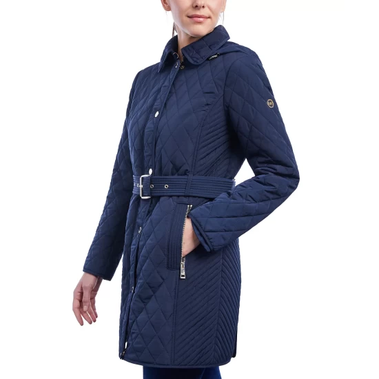 A belt defines the waistline of this beautifully quilted coat from MICHAEL Michael Kors. Complete with a hood for added warmth.