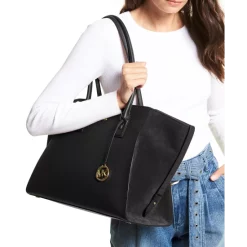 Coupon 👏 Michael Kors Signature Blaire Duffle Satchel Black/silver 🥰