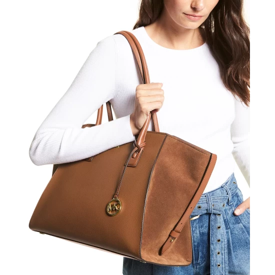 Outlet ✔️ Michael Kors Signature Austin Leather Messenger Bag Luggage 🎉