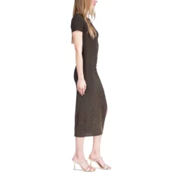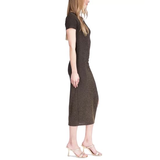 A sleek silhouette covered in subtle sparkle, this MICHAEL Michael Kors midi dress features shape-hugging ruching at the side and a deep slit.