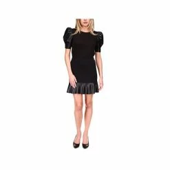 - Faux-leather ruffled trim at hem