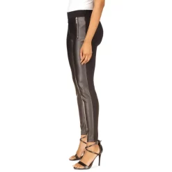 Designed in supple faux leather at the front and sleek knit at the back, these MICHAEL Michael Kors pants punctuate an edgy look with zip pockets.