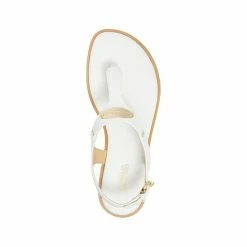 - Round open-toe flat thong sandals with adjustable ankle strap