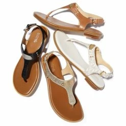 No matter what you’re wearing, the MK Plate Thong Sandals by MICHAEL Michael Kors will fit right in–and they come in multiple colors so you can wear a pair every day of the week! The metallic plate on the front adds a touch of grown-up glamour to a fun, old-school style.