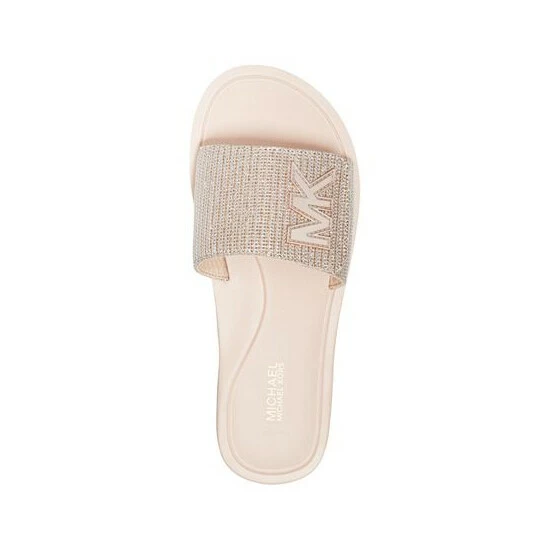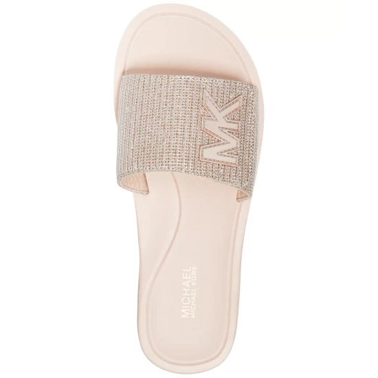 Michael Michael Kors brings glam-girl shine to a classic for a warm-weather go-to in the MK slides.