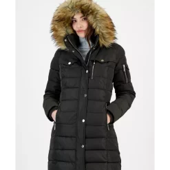 Buy π Michael Kors π© Women’s Faux-Fur-Trim Hooded Quilted π§₯ Coat Black π₯