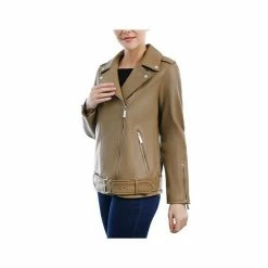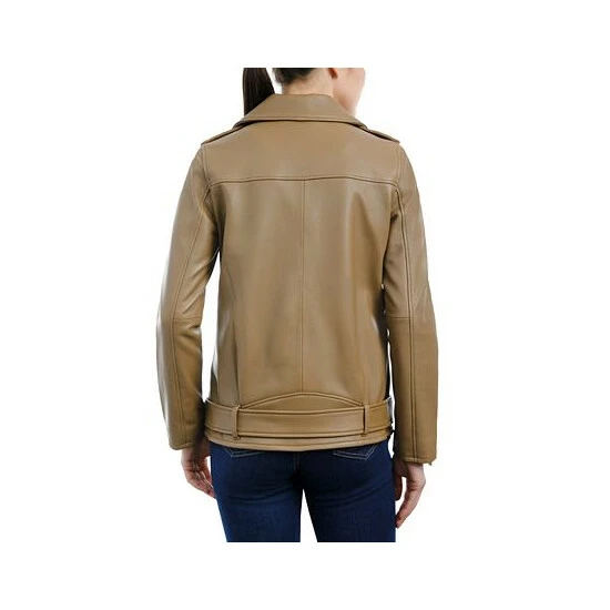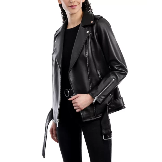 MICHAEL Michael Kors puts fashion in focus with this sleek leather moto coat designed with a belted hem and a chic asymmetric zip front.