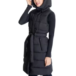Glossy faux-leather trim is the perfect finishing touch on this petite puffer vest from MICHAEL Michael Kors.