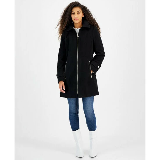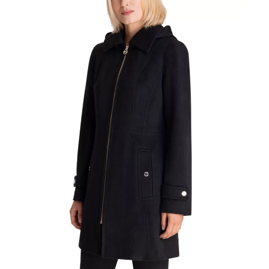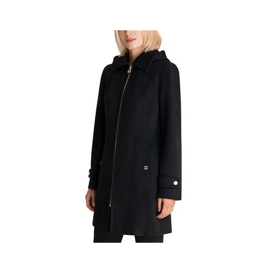 A removable hood brings clever versatility to this petite notched-collar coat from MICHAEL Michael Kors.