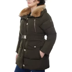 Tons of pockets, a waist-defining belt and a chic faux-fur collar all come together flawlessly on this plus size puffer coat from MICHAEL Michael Kors.