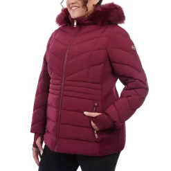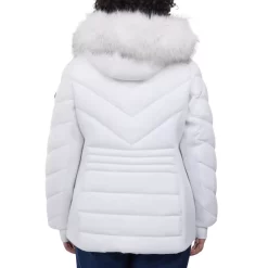 Luxurious faux fur trims the hood on this gorgeous plus size puffer coat from MICHAEL Michael Kors.