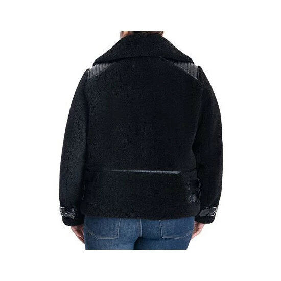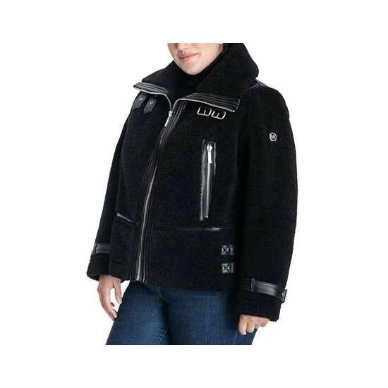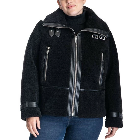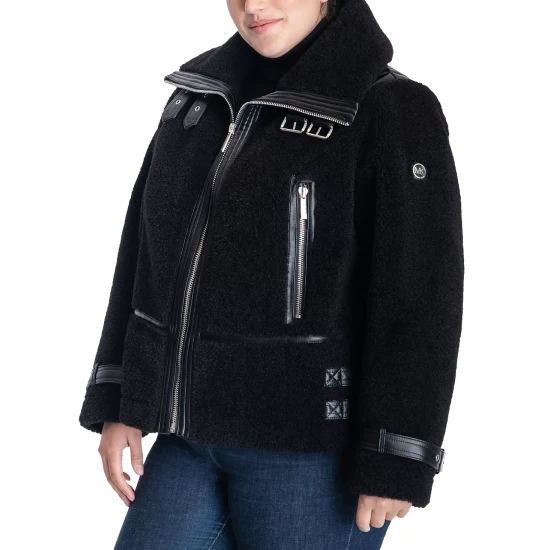A seriously chic faux-shearling design takes this plus size moto coat from MICHAEL Michael Kors to the next level. Buckles at the collar complete the look.