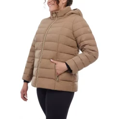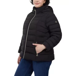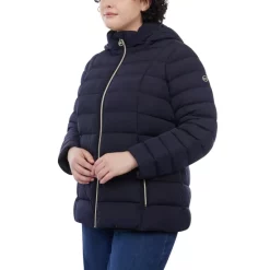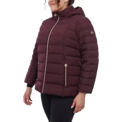 Keep warm and cozy in this plus size puffer coat from MICHAEL Michael Kors, designed with a zip-off hood and a water-repellent finish.