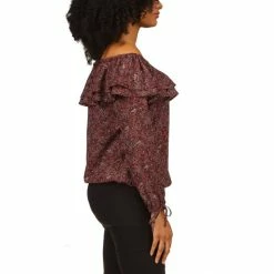 Swirling rich shades of Pop Paisley pebble crepe are ruffled at the off-the-shoulder neckline and tied at the wrists of this stunning top from MICHAEL Michael Kors.