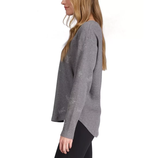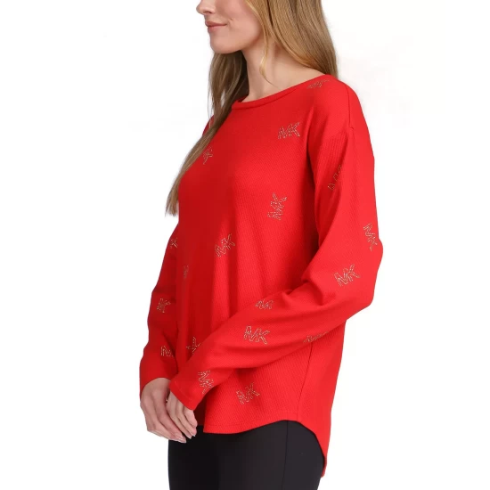 Go for cozy signature chic with this MICHAEL Michael Kors top, in soft waffled fabric with rhinestone logos at the front.