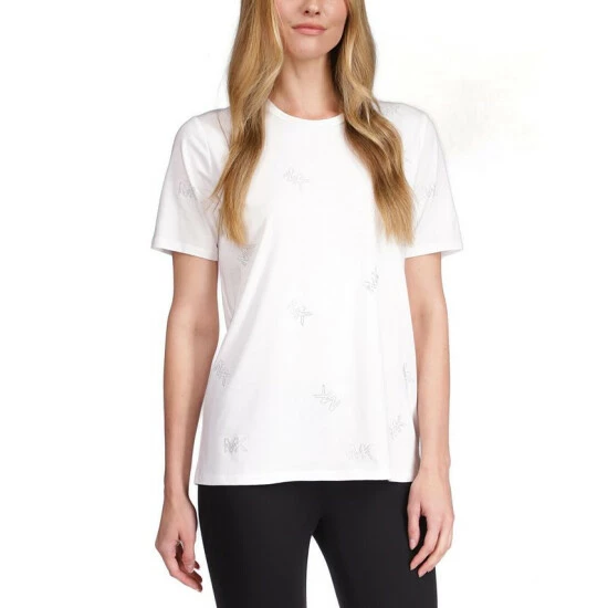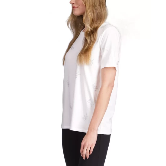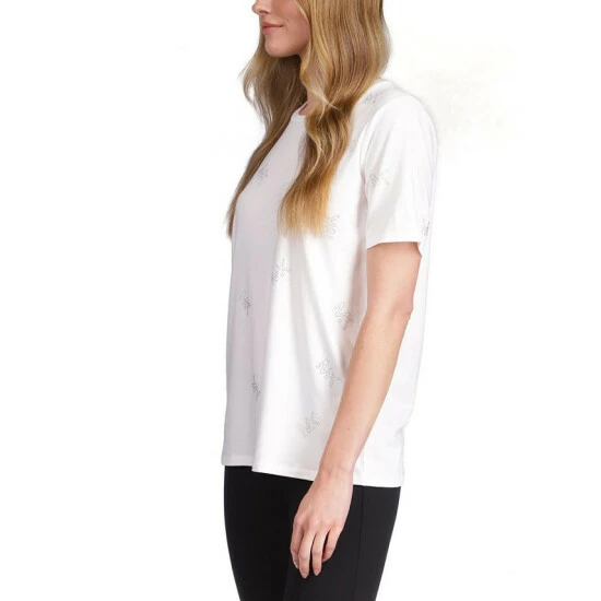 Dress up your casual look with this MICHAEL Michael Kors top, a soft T-shirt in stretchy jersey covered with rhinestone logos.