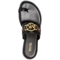 Gold-tone hardware adds inspired metallic flash to the subtle slip-on silhouette of the Rory toe-ring sandals from MICHAEL Michael Kors.