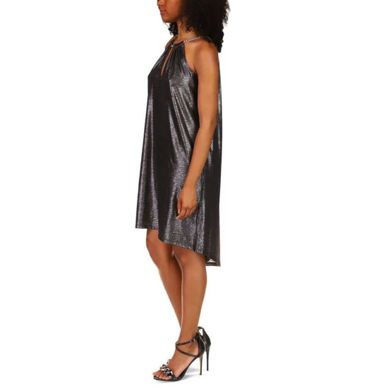 Stunningly chic, this effortless dress from MICHAEL Michael Kors highlights shimmery fabric with a chunky chain at the neckline.