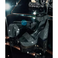 - Microsuede manmade/hot fix stones or suede/large hot fix stones uppers; manmade lining; manmade sole